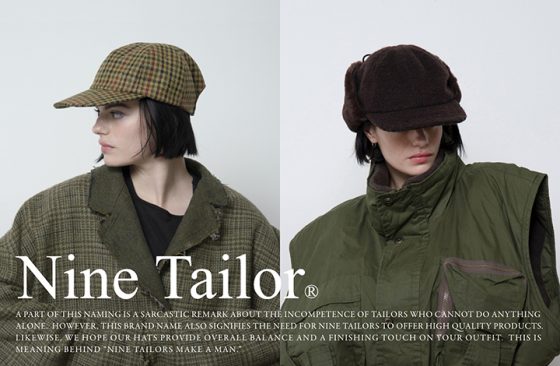ナインテイラーのブランドネームは、イギリスのことわざ “Nine Tailors make a man”(一人前になるには9つのお店、仕立て屋が必要)に由来しています。