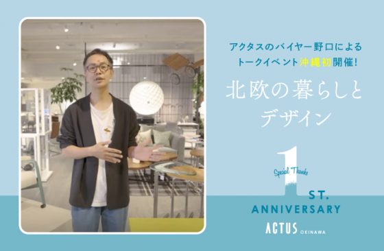 アクタス・沖縄店では、オープン1周年を記念して、9月13日(土)~10月13日(月)の期間中、日頃よりご愛顧いただいている皆さまへ感謝の気持ちを込めて、限定品や、インテリアセミナー、ワークショップ、トークイベントなど、インテリアがもっと好きになる様々な企画をご用意いたしました。