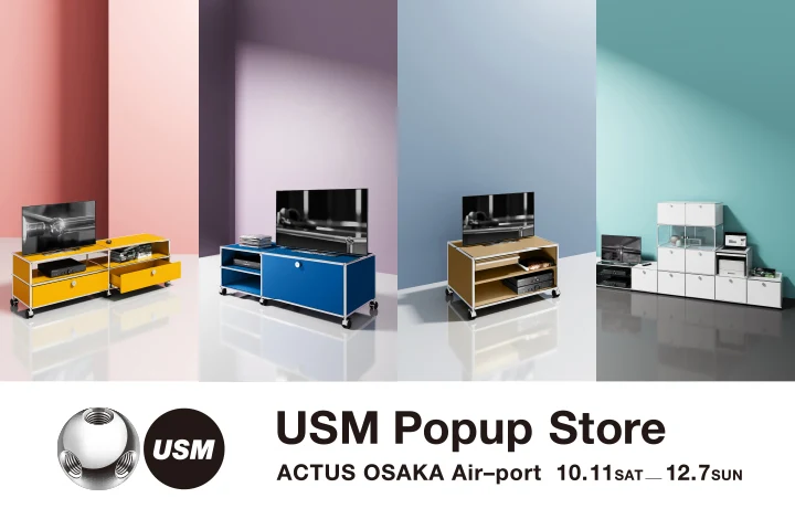 アクタス・大阪空港店では、2025年10月11日(土)~ 12月7日(日)の期間中、スイスを拠点とするモジュラーファニチャーシステムのパイオニア「USM(ユーエスエム)」社のポップアップを開催します。