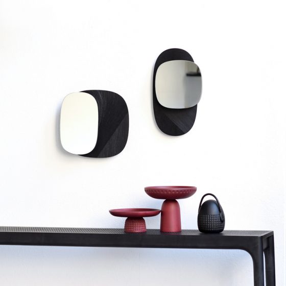 まるでパズルのように、自由に組み合わせて壁面を飾ることができるミラー。サイズ違いでリズミカルに配置すれば、壁がアートインスタレーションのような表情に変わります。