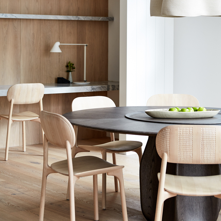 木の表面に刻まれたリズミカルな紋様は、光の当たり方によって豊かな表情を見せ、空間に温かみと洗練された空気感をもたらします。それは単なる家具ではなく、日々の暮らしに寄り添い、使う人の心を満たしてくれる「生きた遺産」とも呼べる存在です。代々受け継がれてきた職人技と、FSC認証材の使用や植樹活動といったサステナブルな視点を大切にしながら、未来へとつながるものづくりを続けています。