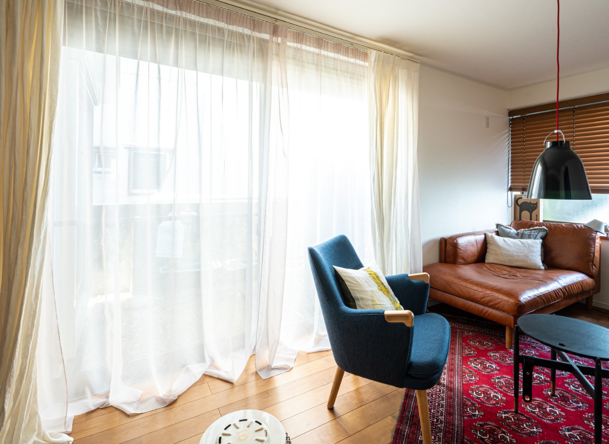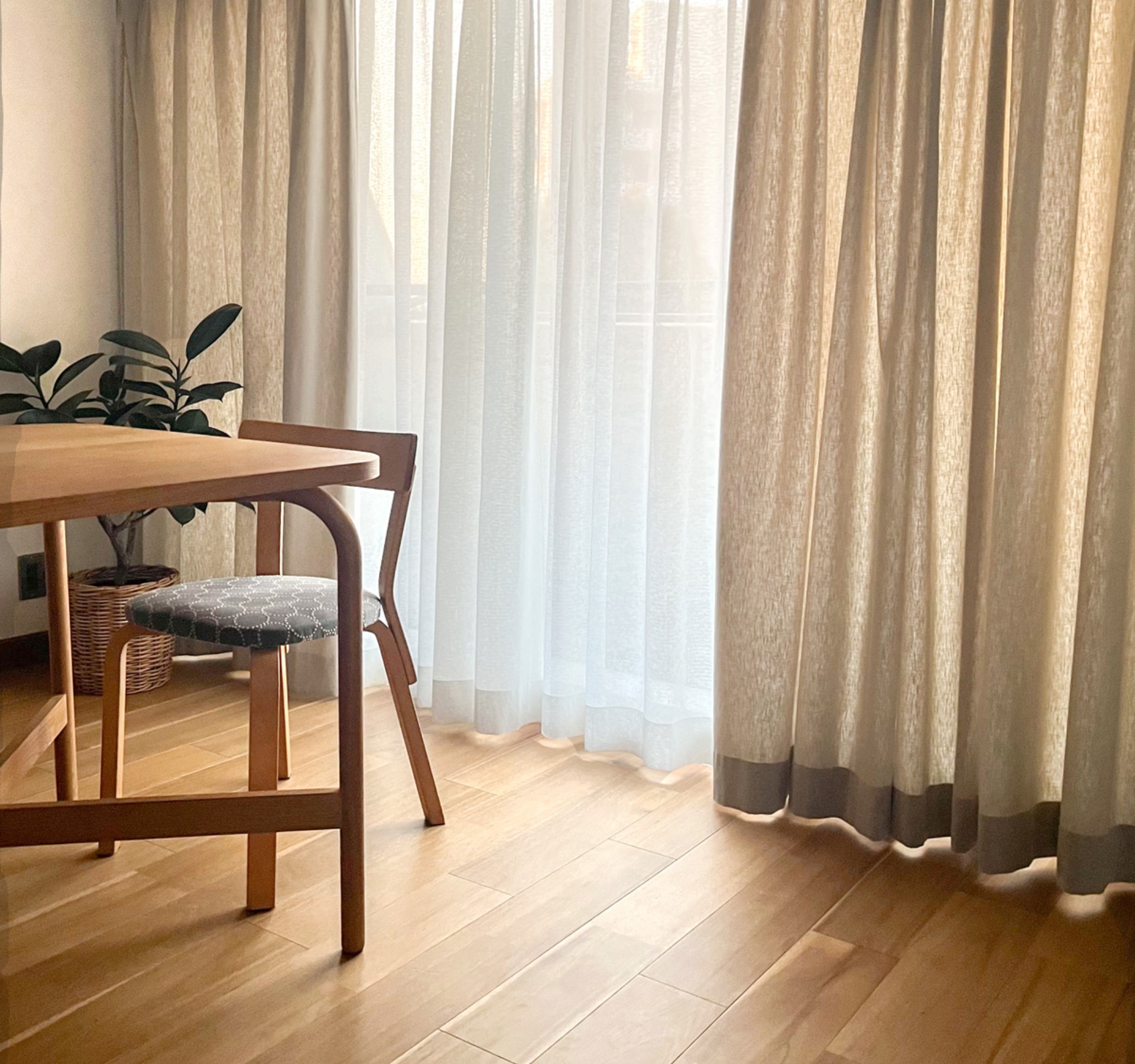 「以前からミザンが好きで、お客様にもよくご提案していました。お客様からも「やっぱり素敵でした!」と喜びの声をいただいていたので、自分でも使ってみようと購入することに。じつは、コスパを重視したレースカーテンを使っていたのですが、ミザンに変えて驚きました。『カーテンひとつで、ここまで部屋の雰囲気が変わるんだ!』と、身をもって実感しています」