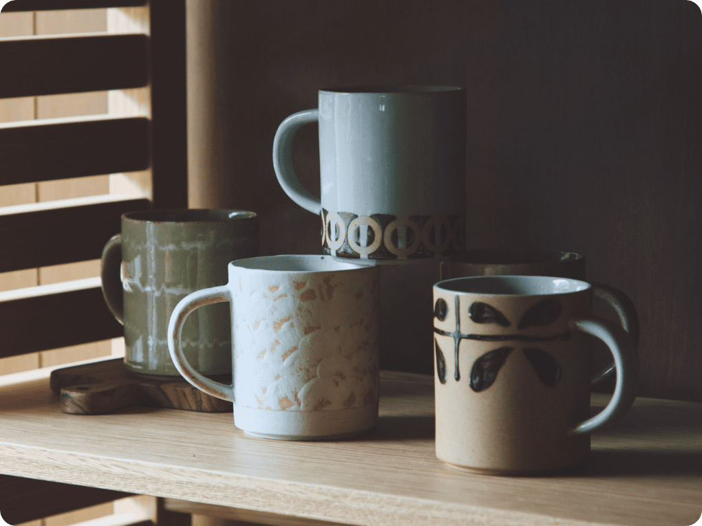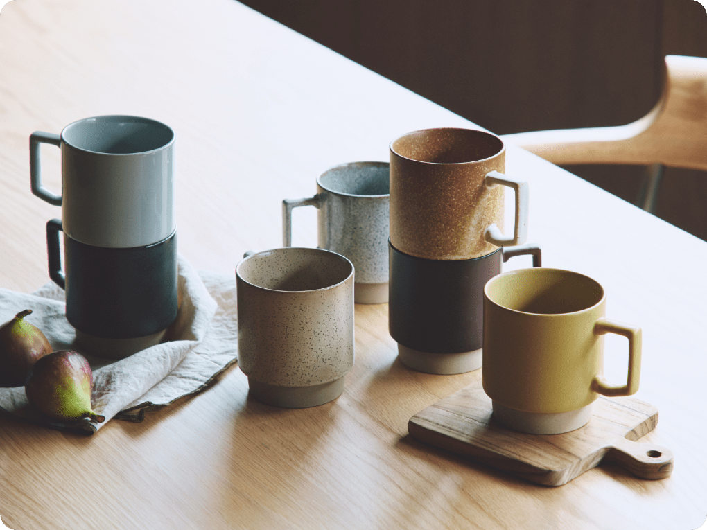 美濃焼・山功高木製陶所が描く、心和む手書きのデザイン。道具作りから始まる丁寧な手仕事と、ユニークな加飾が、指先に確かな温もりを伝えます。毎日の相棒にしたい一客です。