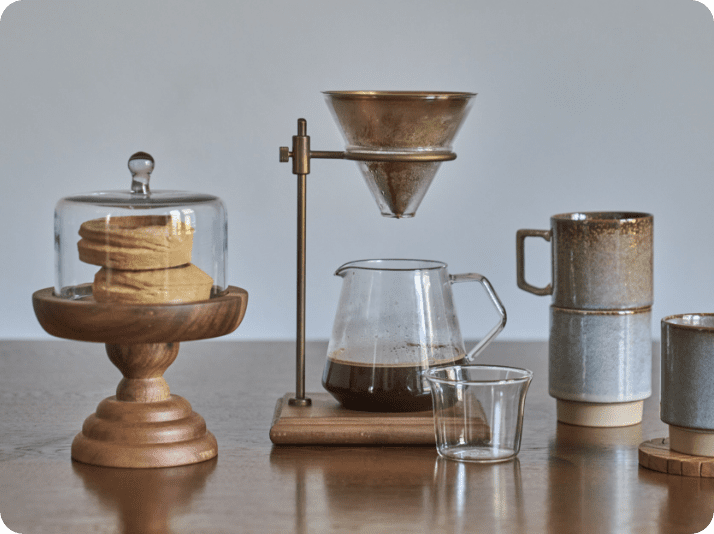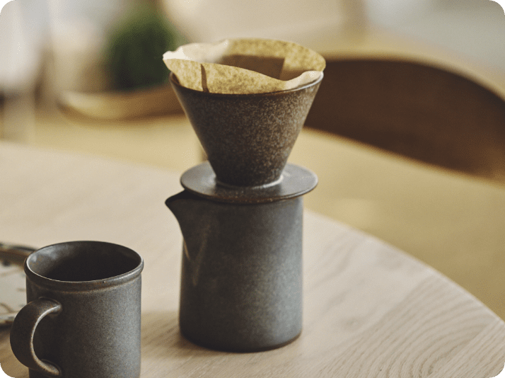心ほどけるスローな時間を、この一式から。必要な道具が揃っており、初心者の方にもおすすめです。フィルターは好みや味わいに合わせて、2つのタイプからお選びいただけます。