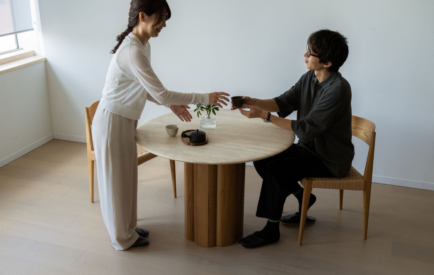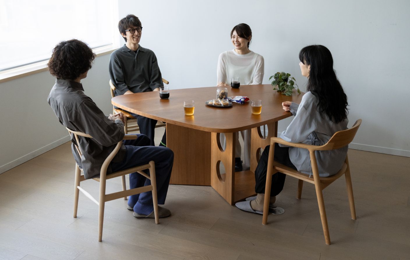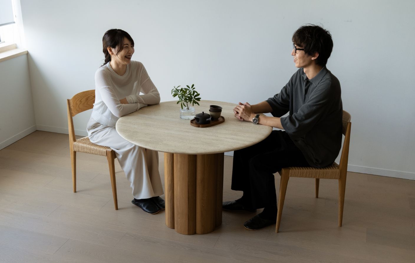 実は僕も自宅では円形テーブルを使っています。角がないだけで圧迫感がなく、空間全体がぐっと柔らかくなるんですよね。