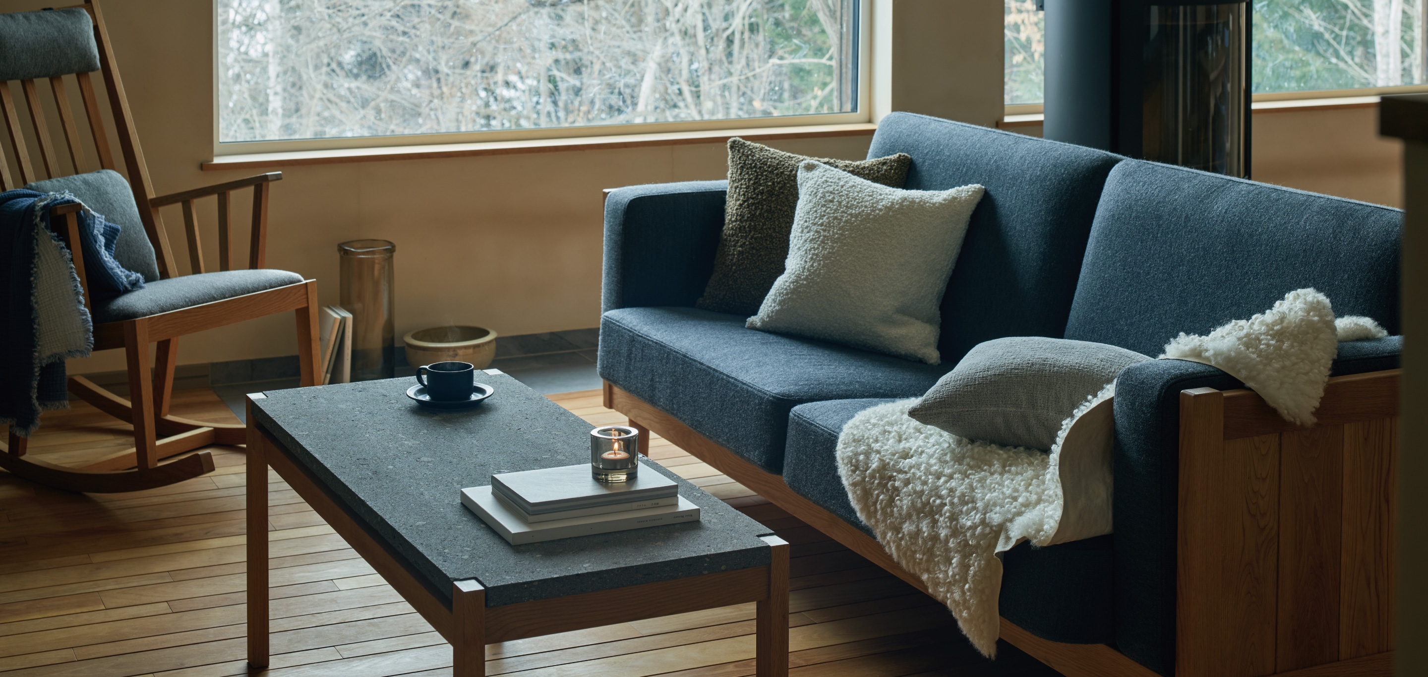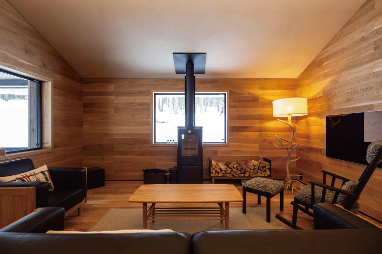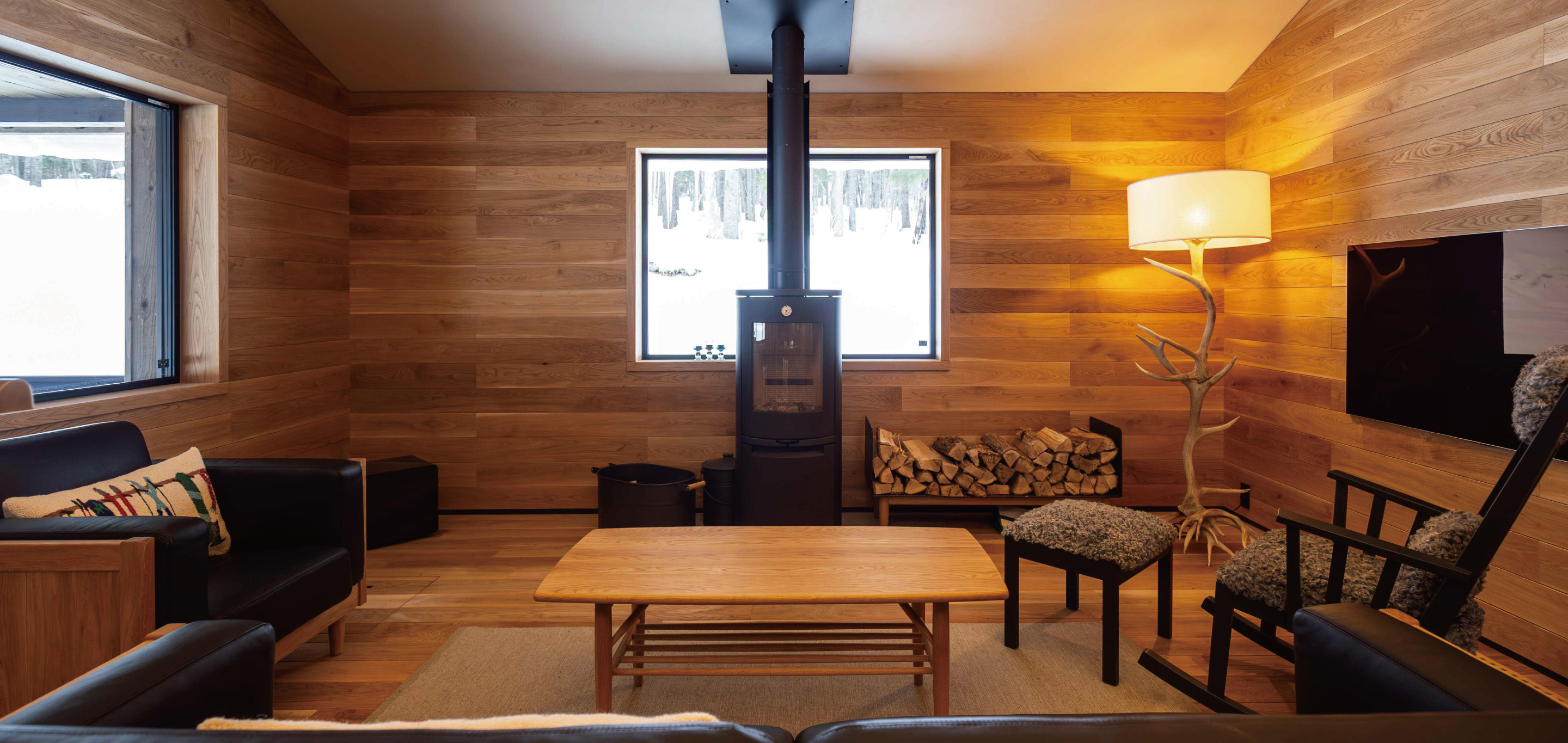 冬はスキー、夏はフライフィッシング。東京に暮らすHさんは自然の豊かさと空港近くという利便性から東川町に拠点をもつことを決めました。友人の紹介で北の住まい設計社の渡邉さんと出合い、意気投合。山に近い土地を探していると相談するとスノーシューを渡されて現在の住まいが立つ土地を案内されました。これまでに何度か自宅を計画し、仕事でも空間に携わるHさん。家具も空間も些細なところまでこだわり抜く姿勢に驚きつつ共感します。
