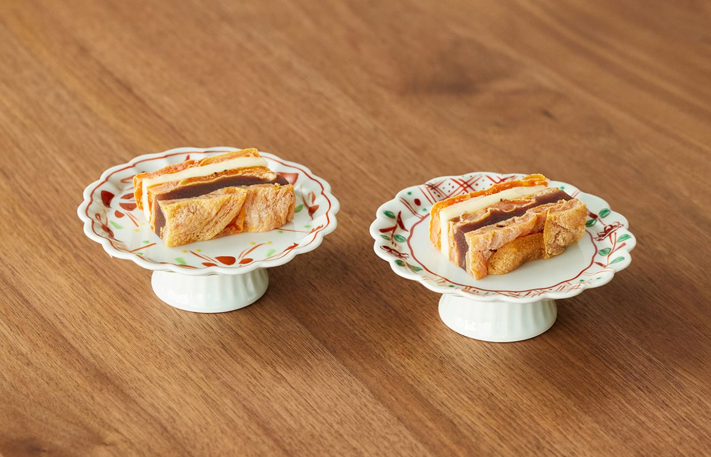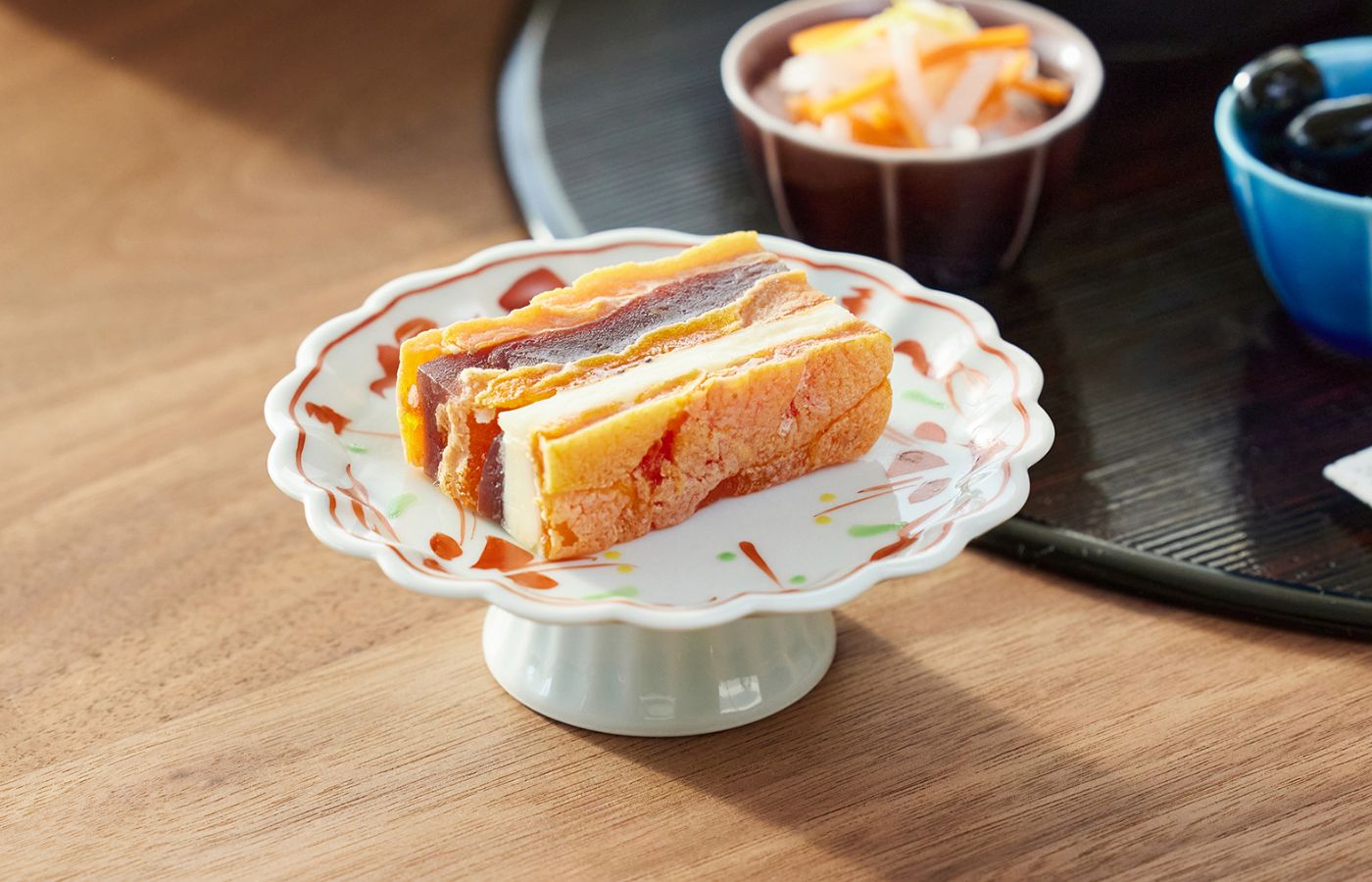 一品料理やデザートを盛るのにちょうどいいサイズのコンポート皿。高台が食卓に立体感をプラスし、モダンなおもてなしの空間を格上げします。美しい赤絵のアクセントが映える、特別な日のうつわです。