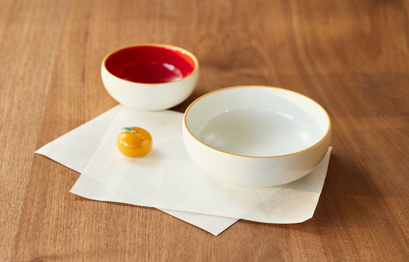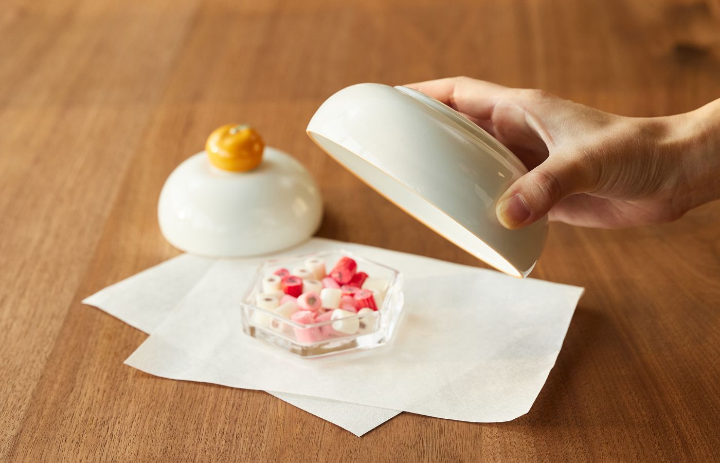 飾るだけでなく、器や箸置きとして実用的に使える「うつわになる鏡餅」。しきたりを大切にしながら、現代の暮らしに寄り添うデザインが光ります。鏡餅の中にお菓子などを忍ばせて、お子さまへのちょっとしたサプライズにいかがですか。