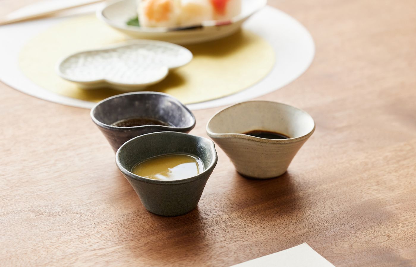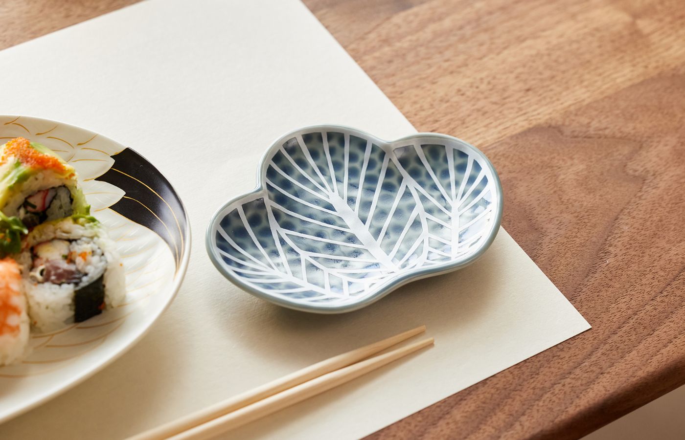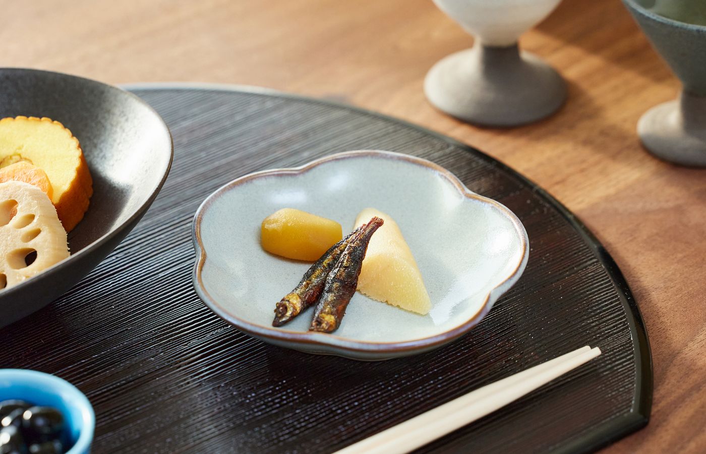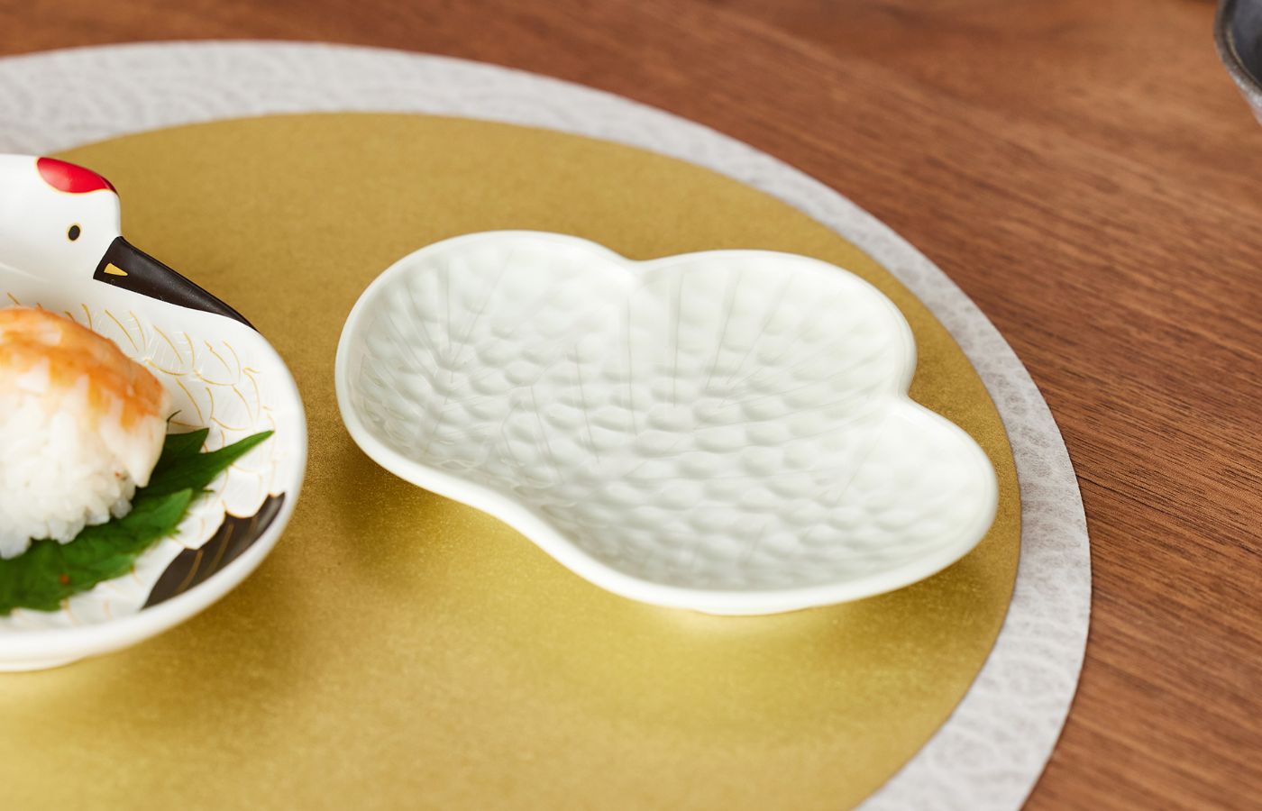 取り皿として重宝する小皿と小鉢。縁起の良い梅形のお皿は、ハレの日のテーブルコーディネートに最適です。ニュアンスカラーが、日々の食卓にさりげなく華を添えます。