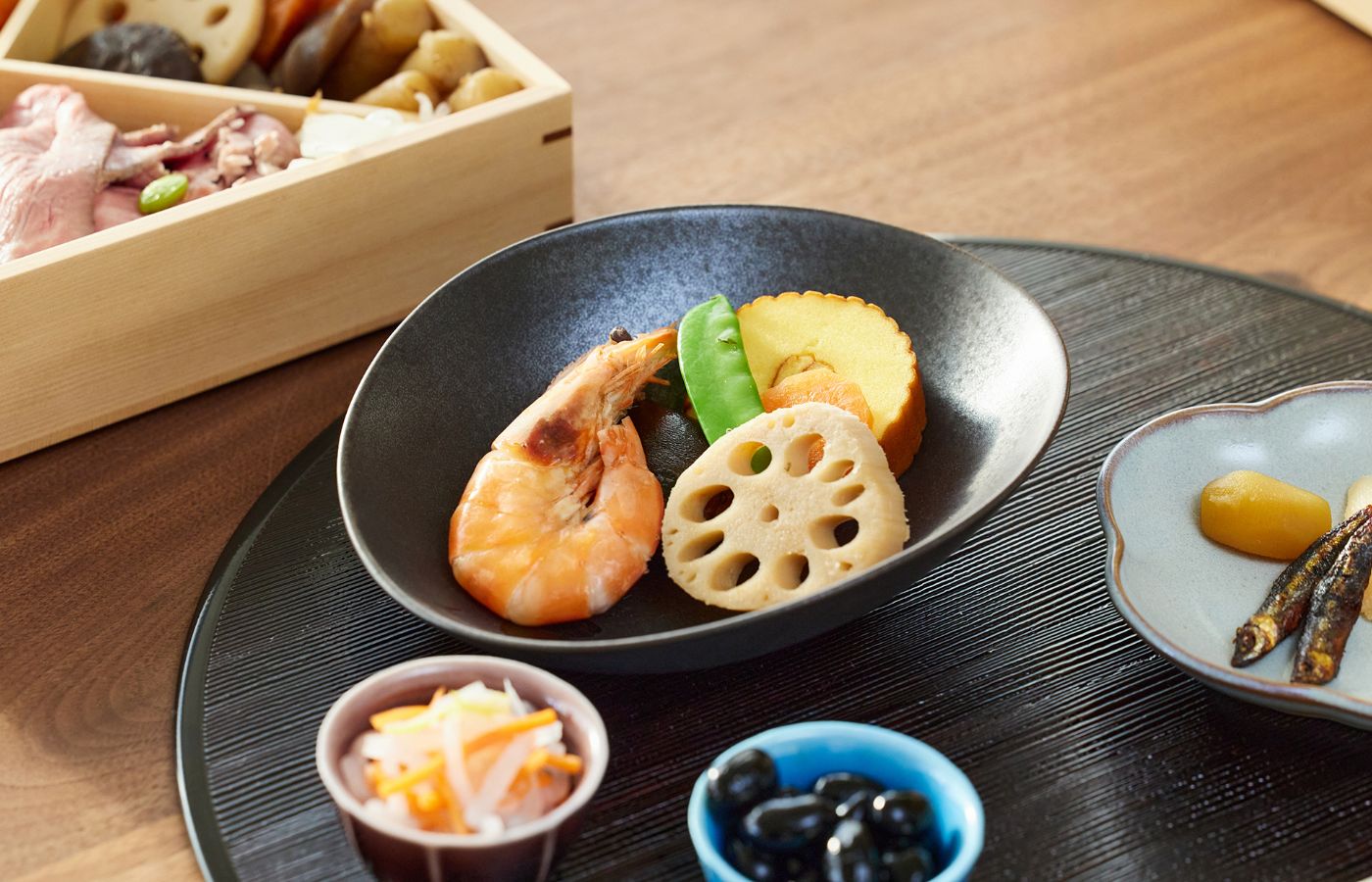 おせちの伝統的なイメージを保ちつつ、現代の暮らしにも美しく馴染みます。