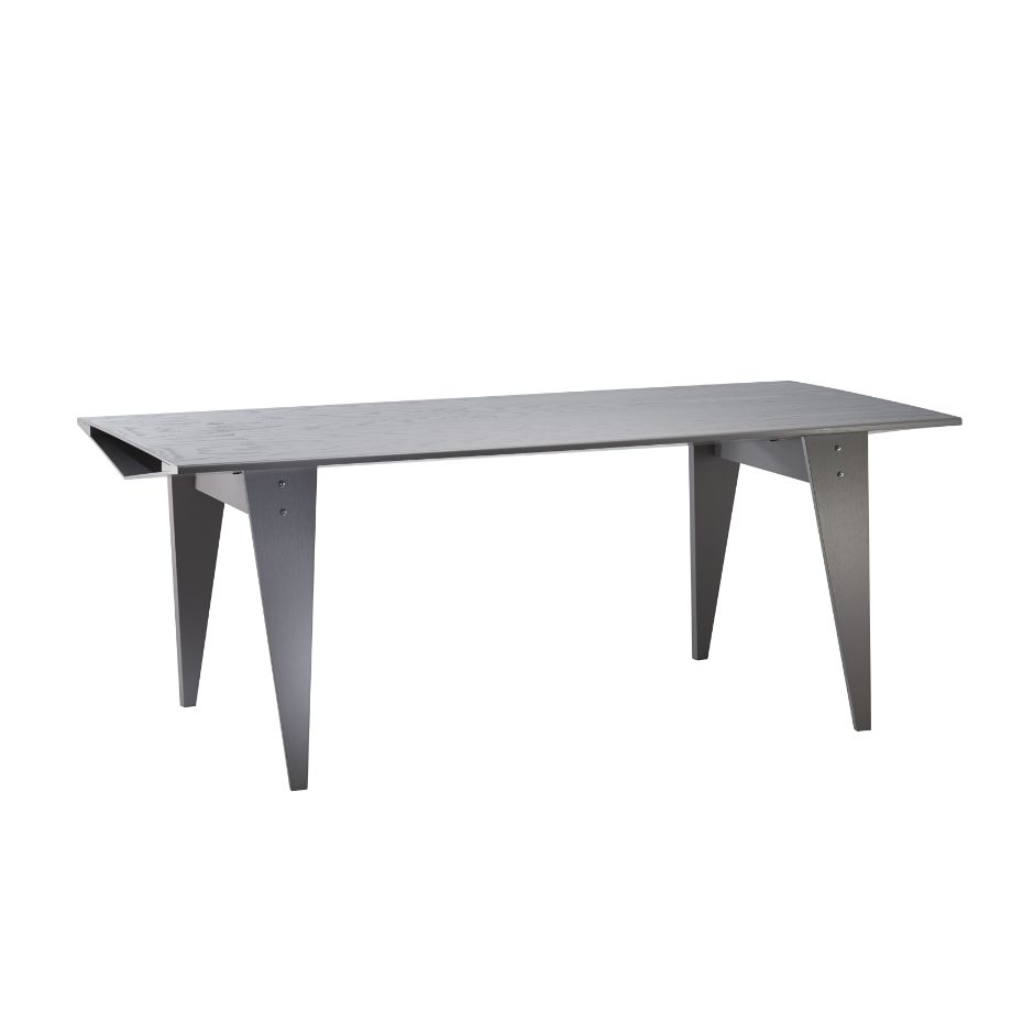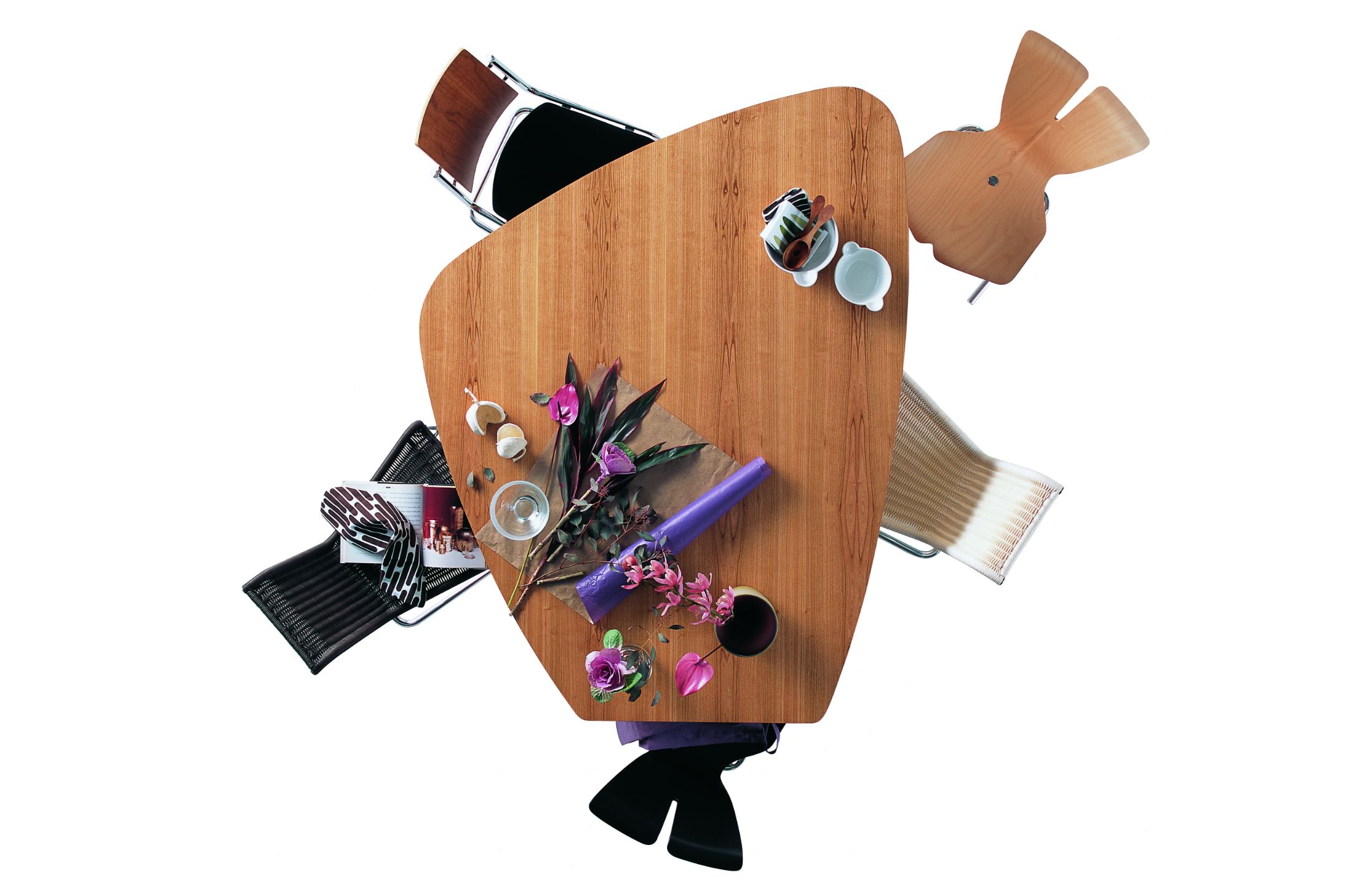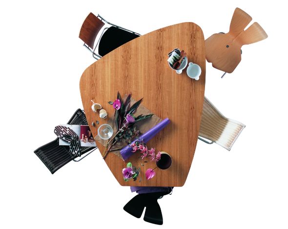 天板の不定形なフォルムは、プルーヴェにより描かれました。彼はブロッホイザーに「チューブ・アプラティ」をはじめとした、「素材」の重要さを教示した人物です。しかしプルーヴェが描いたのは天板のみだったため、ブロッホイザーはテーブルを完成させるために、プルーヴェの自宅で使われていた暖炉の形状からインスピレーションを得て、レッグを自らデザインしました。