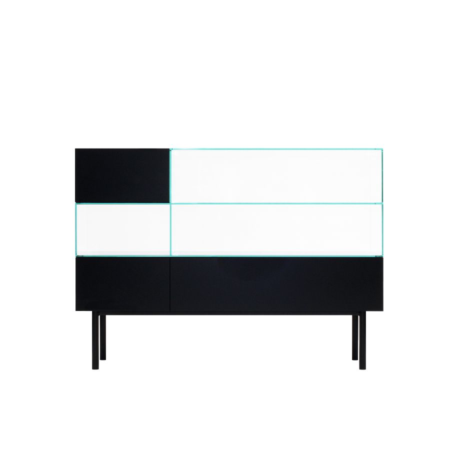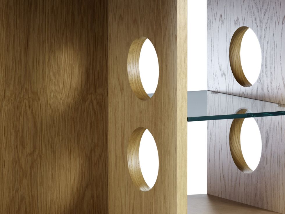 「素材」を重視したプルーヴェによって天板がデザインされ、彼を敬慕するブロッホイザーがプルーヴェ宅の暖炉の形をレッグに採用。そこで、「思想」の面でブロッホイザーに多大な影響を与えたスミッソンによってレッグに穴がうがたれ、そして、デザインが持つ「機能」を重視するヴェヴェルカがガラスの棚を付け加えました。これらのアイデアをブロッホイザーのエンジニアとしての知見を発揮して誕生したのが、M21なのです。
