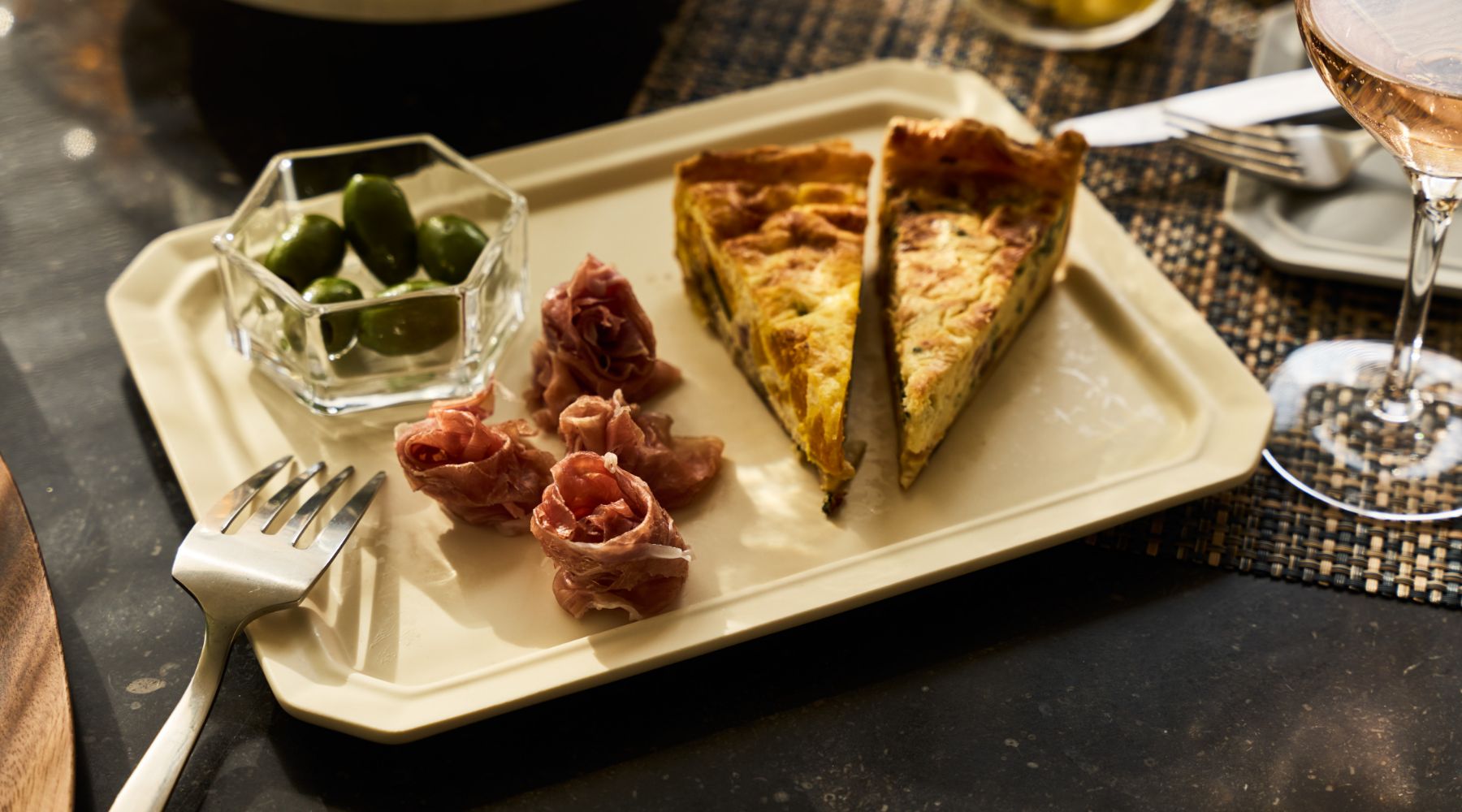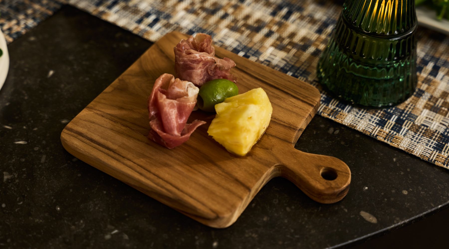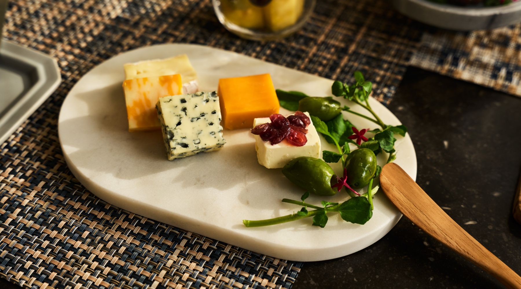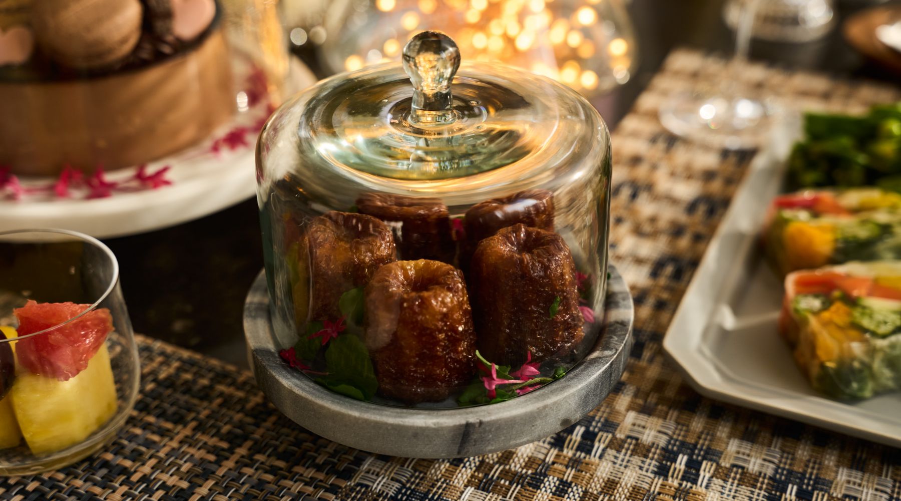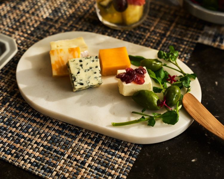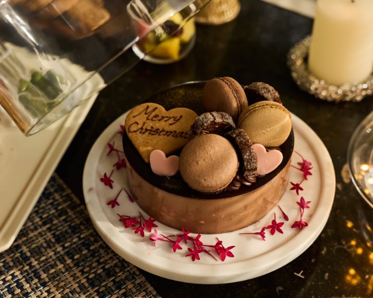 クリスマスの主役は、何と言ってもデコレーションケーキ。冷たさを保つ大理石のスタンドやパーティ仕様のフラットプレート、アカシア素材のテーブルウェア*も揃いました。