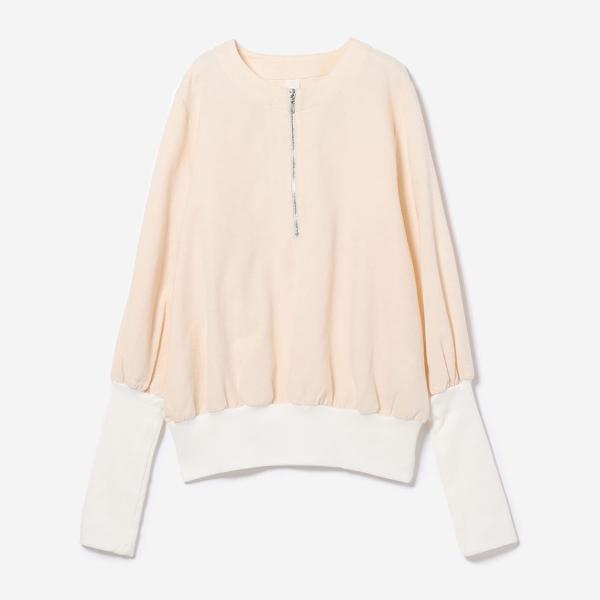 胸元にzipがあるので、あけるとVネックのようにもなるので、インナーをカラーにして楽しむ事もできるので挑戦しやすいです。