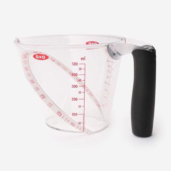計量カップは上からメジャーが見えるから、水や調味料をそそぎながら調整できるのが便利!